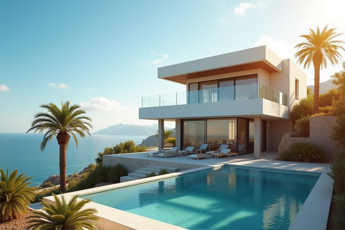 Villa espagnole moderne avec panneau a vendre face a la mer